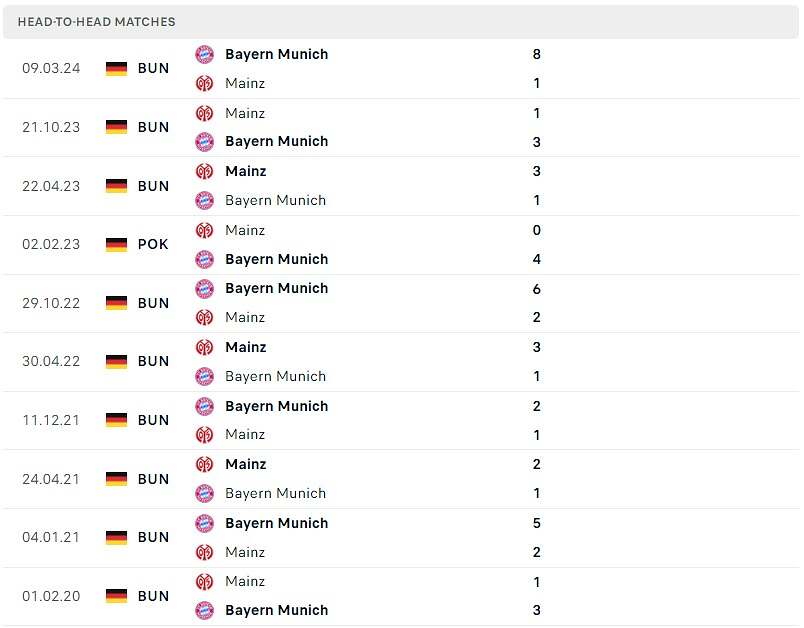 Mainz 05 0-2 Bayern Munich.